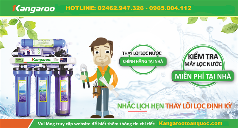 Hè 2018 Kangaroo Toàn Quốc triển khai chương trình kiểm tra máy lọc nước + Bảo Dưỡng và sửa chữa máy lọc nước Miễn phí tại nhà áp dụng cho khu vực nội thành Hà Nội.