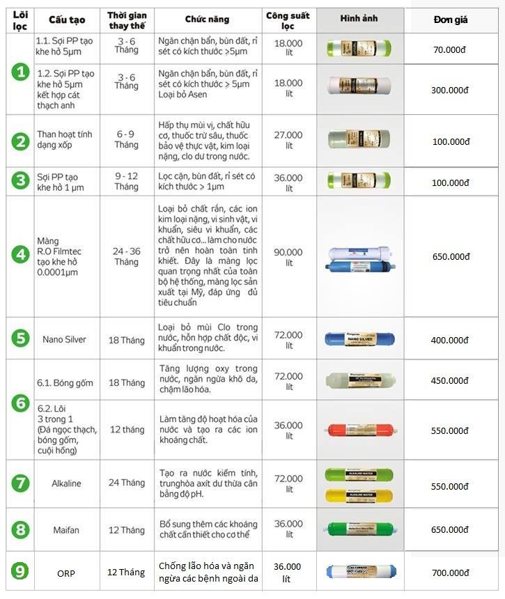 Thời gian thay lõi lọc:
